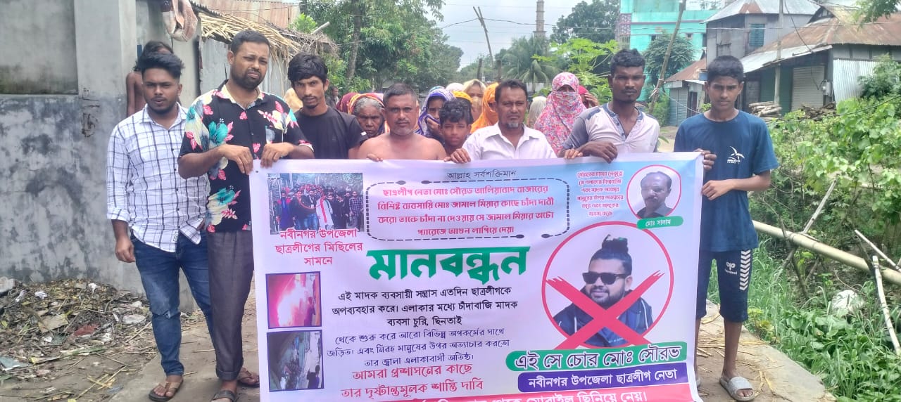 নবীনগরে চাঁদা না দেওয়ায় অটোর গ্যারেজে আগুন লাগানোর প্রতিবাদে মানববন্ধন